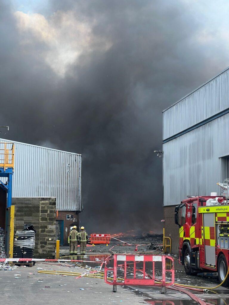 A Major Incident was declared earlier after Northamptonshire Fire and Rescue Service was called shortly before 6.30am today (May 23) to the blaze at a recycling warehouse on the Sanders Lodge industrial estate. The fire is now under control and contained within the site, although there remains a large amount of smoke billowing from the site.